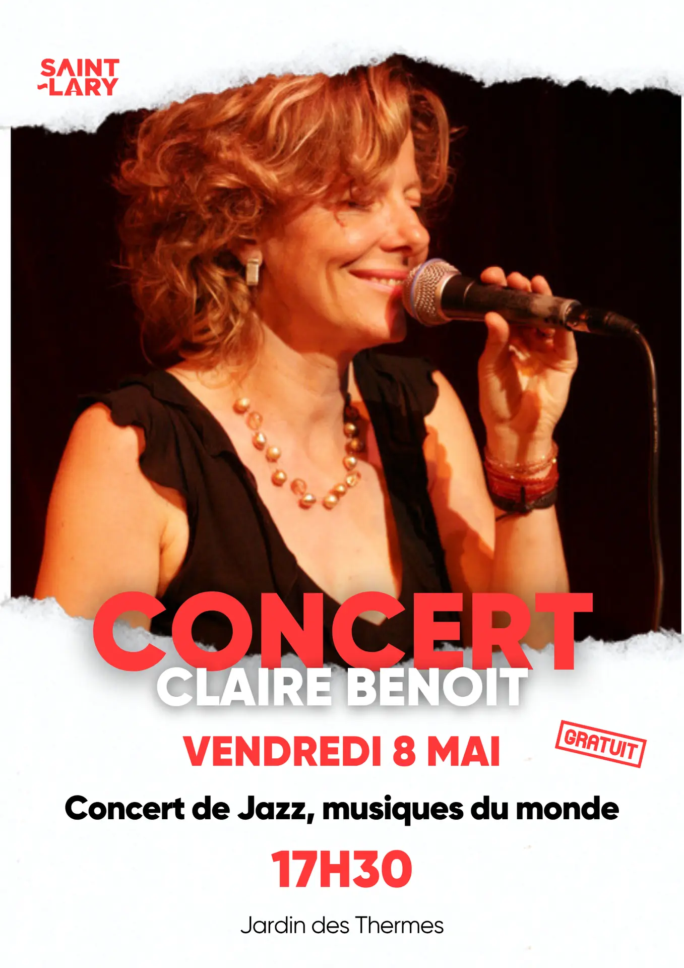 Concert en duo "Jazz, Musiques de rencontre. De la France à l'Amérique" par Claire Benoit. Gratuit. Devant les Thermes.